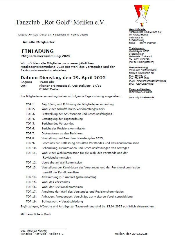 Mitgliederversammlung 29.04.2025