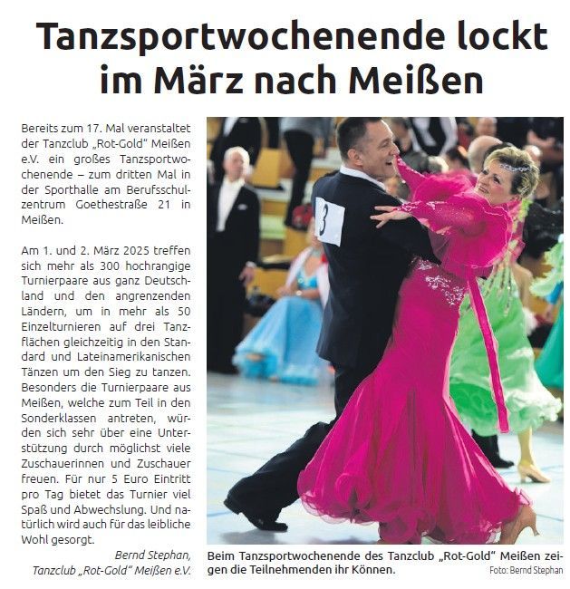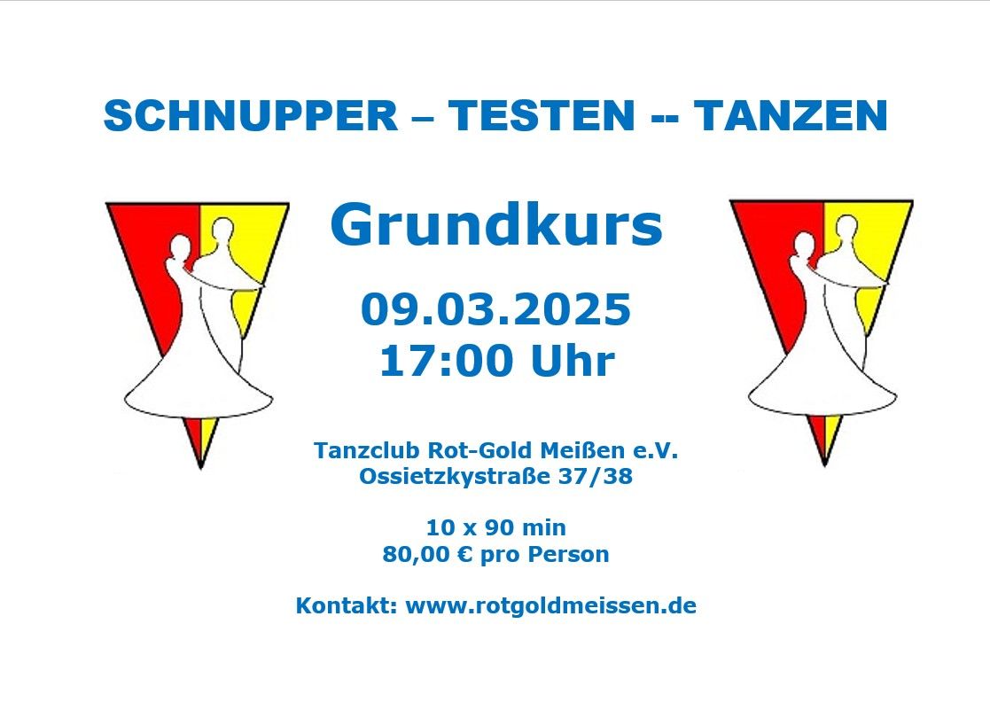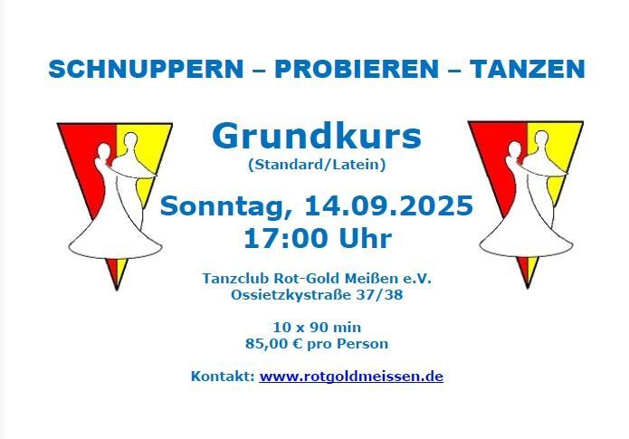 Nachdem die Grundkurse in den letzten 3 Jahren so große Erfolge waren, bieten wir auch im Jahr 2025 allen tanzbegeisterten Anfängern und Fortgeschrittenen die Möglichkeit, erste Schritte in den Standard- und lateinamerikanischen Tänzen zu erlernen oder die bereits erlernten Kenntnisse zu verbessern. Schnell anmelden, denn die freien Plätze sind begrenzt!