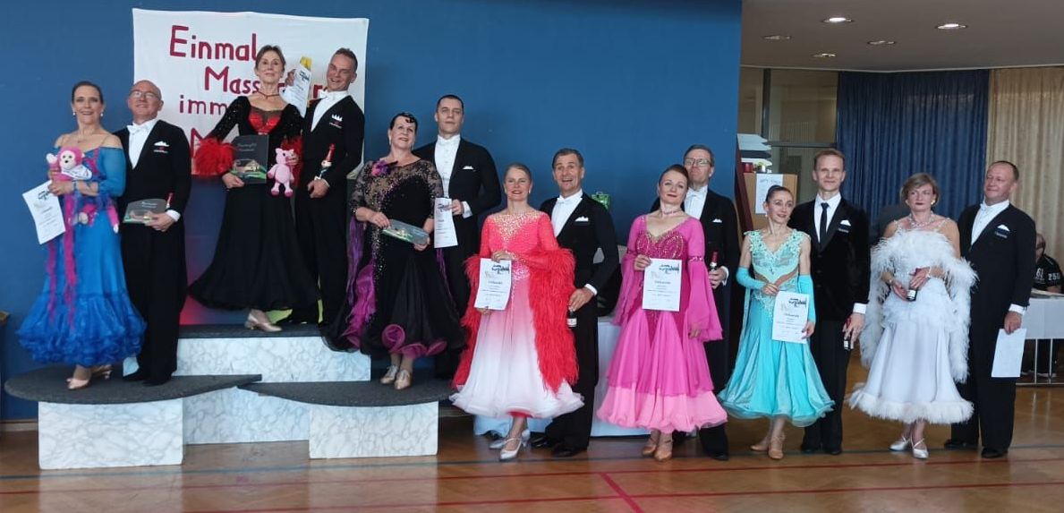 Zum Ballturnier an diesem Abend tanzten Bernd & Ina diesmal in der MAS III S und schaffte es erneut bis auf den 4. Platz von 12 Paaren. Mit einem weiteren 4. Platz in der MAS III S Latein beendeten sie ihr Turnierewochenende.