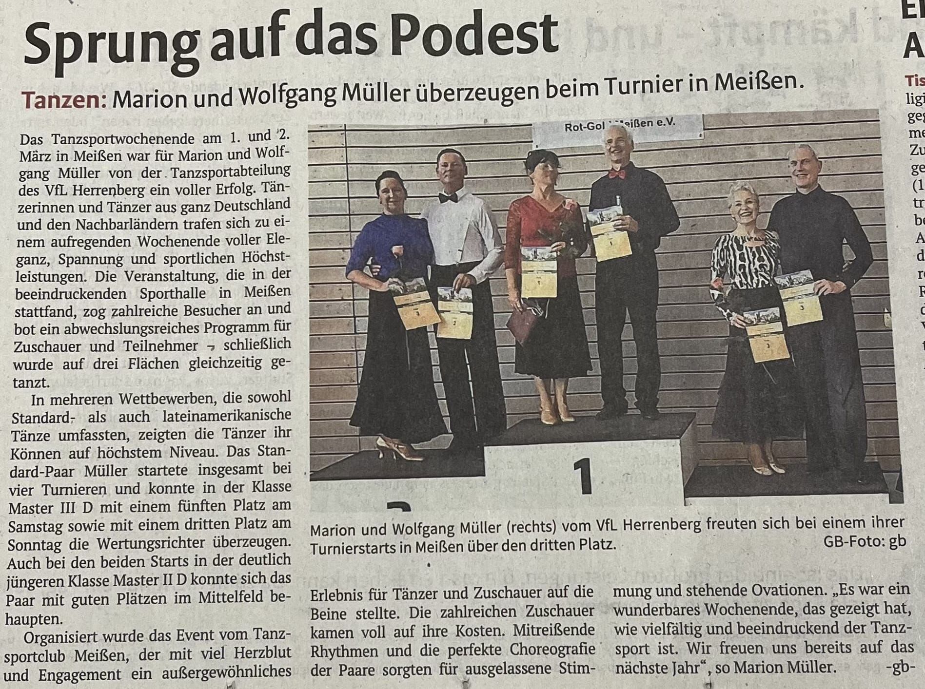 Bei TSV Schwarz-Weiß Freiberg waren Mathias & Michaela Müller in der Sen III D Latein angetreten. Und auch sie landeten mit Platz 3 auf einem Treppchenplatz.