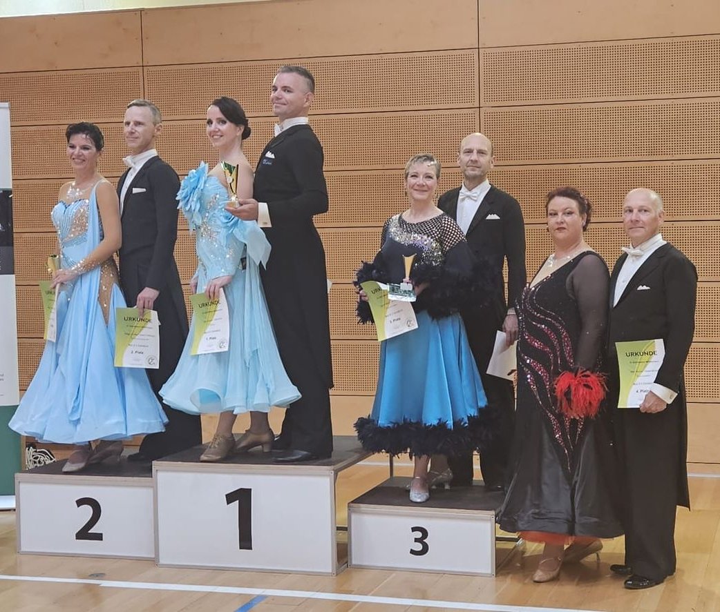 Mit Peter & Ines Stransky wurde unser Klub in Königsbrunn vertreten. Mit einem 4. Platz von 10 Paaren ertanzten sie sich am Samstag gleichzeitig die letzten notwendigen Punkte für den Aufstig in die MAS III C Standard. Das erste Turnier in der C-Klasse beendeten sie dann am Sonntag mit Platz 8.