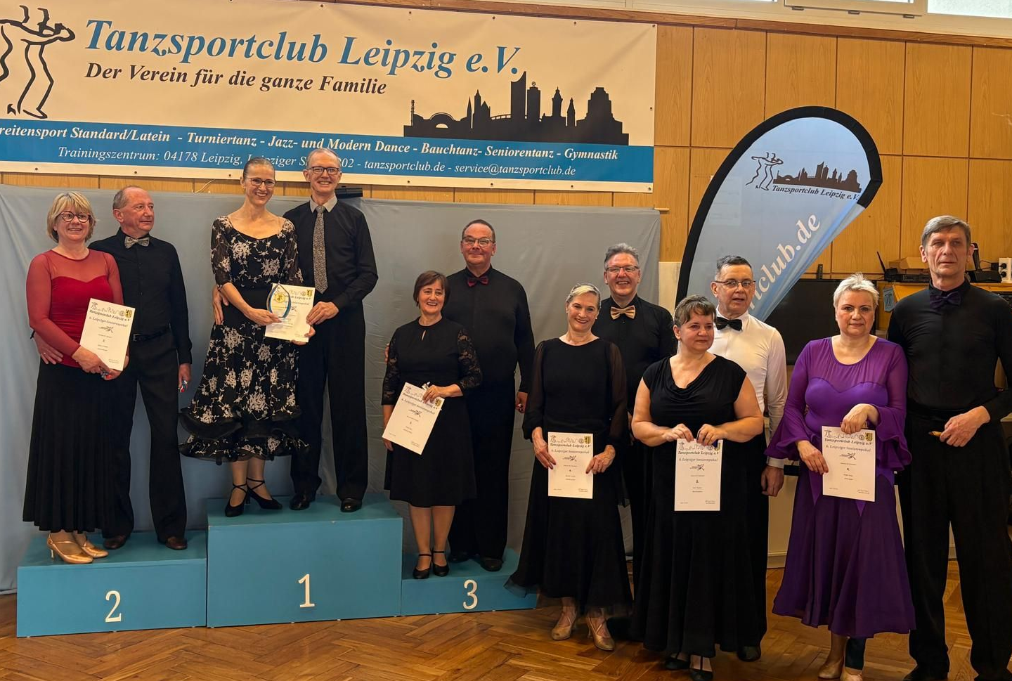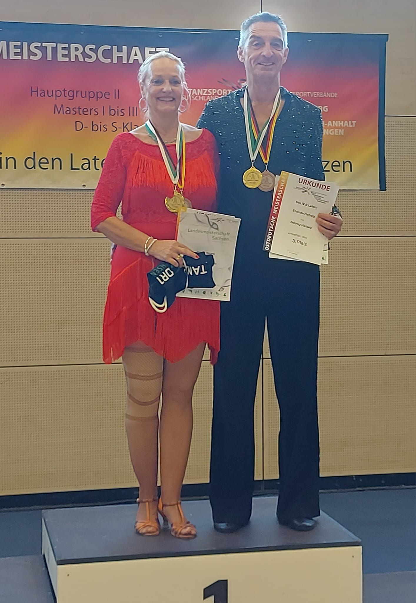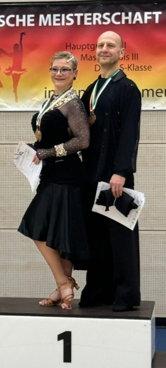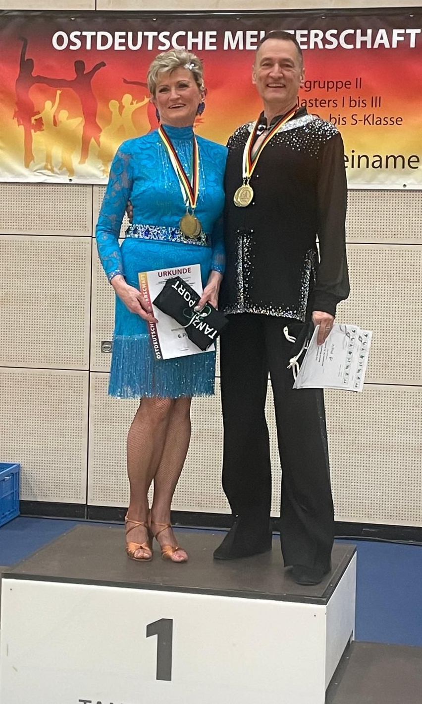 Bernd und Ina Stephan mussten in der SEN III S starten. Mit einem 6. Platz in der Gesamtwertung wurden sie jedoch Landesmeister und Ostdeutscher Meister in der SEN IV S Latein.