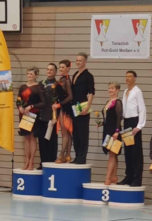 Auch Frank und Astrid Heisig waren unterwegs. In ihrem 1. Turnier nach fast 2 Jahren ertanzten sie sich in der MAS II B Latein den 4. Platz.