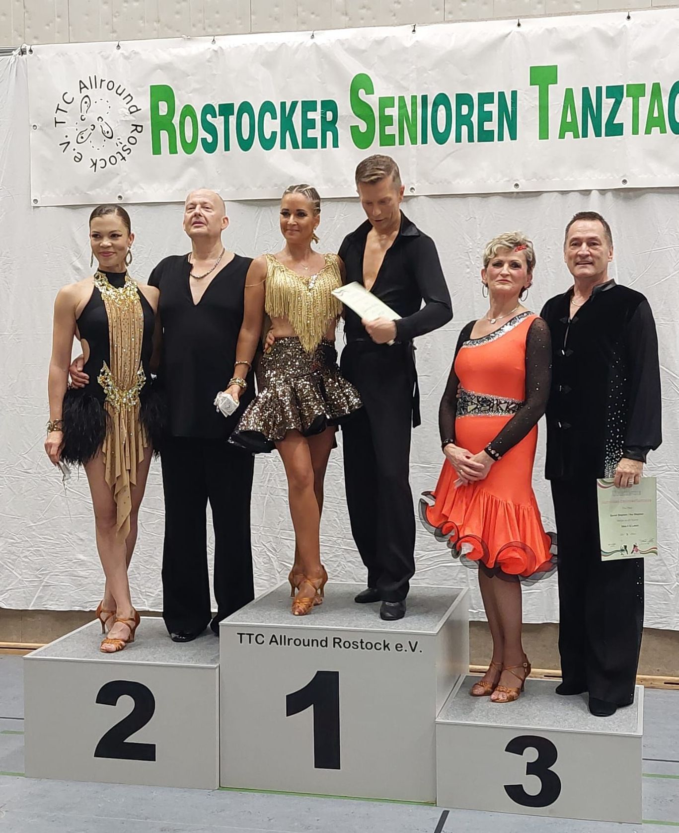 Auch unser "Gastpaar" Jaqueline und Uwe Vetter haben Top-Leistungen erzielt! Beim Turnier "Ostsee tanzt" in Holm ertanzten sie sich am Samstag in der MAS III C Standard den 9. Platz von 17 Paaren und schafften es in der MAS III D Latein sogar auf den 1. Platz - ein Ergebnis, welches Sie am Montag gleich noch einmal wiederholen konnten - einfach SUPER!