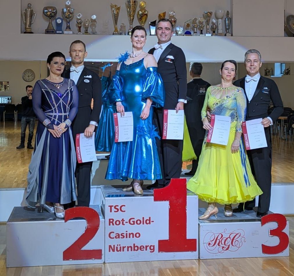 In der Abendveranstaltung des gleichen Turnieres schafften es Heidi Lindenbach & Jochen Göpfert ebenfalls auf das Treppchen. Sie ertanzten sich in der MAS III A Standard den Platz 3. (Sieger war ein Paar der MAS II A)